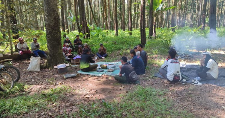 Banyuwangi Barat – Perum Perhutani KPH Banyuwangi Barat bersama dengan Penyadap blok Bendodampit kompak mengawali pekerjaan sadapan tahun 2026 dengan selamatan ingkung yang dihadiri oleh Asisten Perhutani (Asper) Rogojampi beserta jajaran dan para Penyadap di Tempat Penimbunan Getah (TPG) Bayu Petak 4a RPH Bayu BKPH Rogojampi, pada Jum’at (09/01/2026).