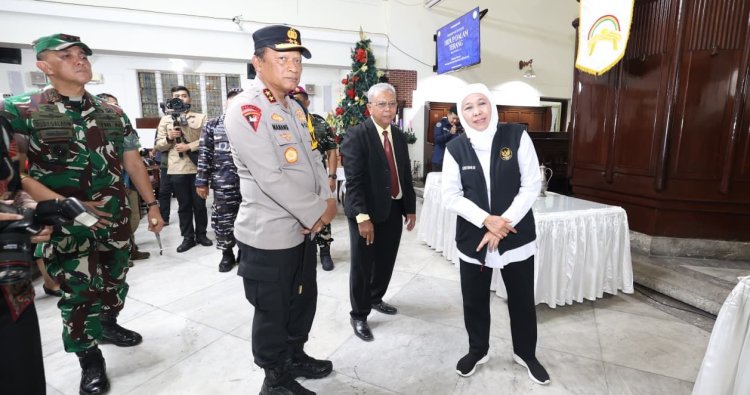 SURABAYA – Kapolda Jawa Timur Irjen Pol Drs. Nanang Avianto, M.Si. bersama Forum Koordinasi Pimpinan Daerah (Forkopimda) Jawa Timur meninjau langsung sejumlah gereja di Surabaya jelang perayaan Natal, Selasa (24/12/2025).