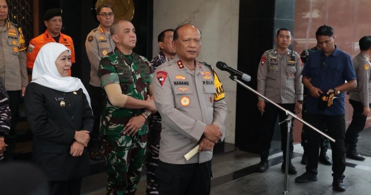 Kesiapan aparat gabungan dalam mengamankan perayaan Nataru di wilayah Jawa Timur itu ditandai dengan Apel Gelar Pasukan Operasi Kepolisian Terpusat Lilin Semeru 2024, di Mapolda Jatim, Jumat (19/12/2025).