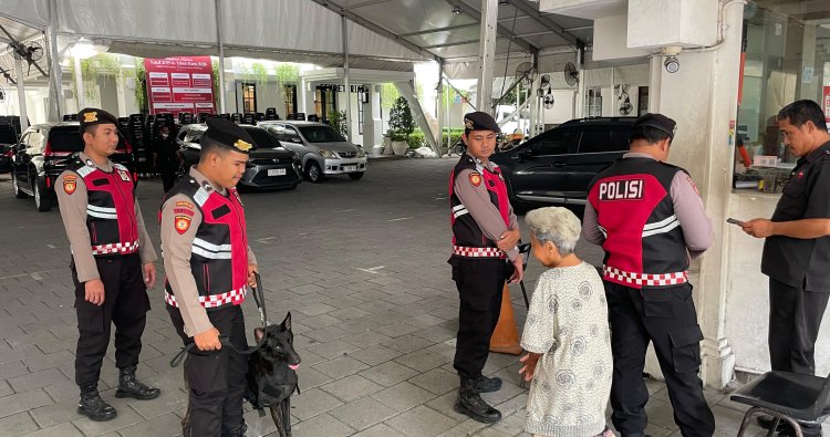 Dalam pelaksanaannya, personel Ditsamapta Polda Jatim mengerahkan satwa K9 untuk melakukan pemeriksaan menyeluruh di area dalam dan sekitar gereja.