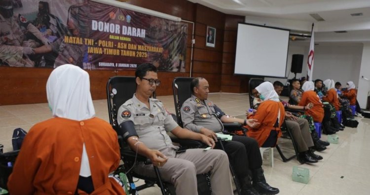 SURABAYA – Panitia Natal TNI dan Polri menggelar kegiatan Bakti Sosial donor darah yang dilaksanakan di Kantor PMI Cabang Surabaya, Jalan Embong Ploso No. 7–15, Surabaya, Kamis (8/1/2026).