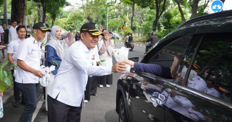 Surabaya - Perum Perhutani Divisi Regional Jawa Timur (Divre Jatim) menggelar aksi pembagian 2.026 bibit pohon secara gratis kepada masyarakat di sejumlah titik strategis di Surabaya sebagai bagian dari gerakan serentak pembagian bibit di tujuh kota di Jawa Timur, pada Senin (5/1/2026).