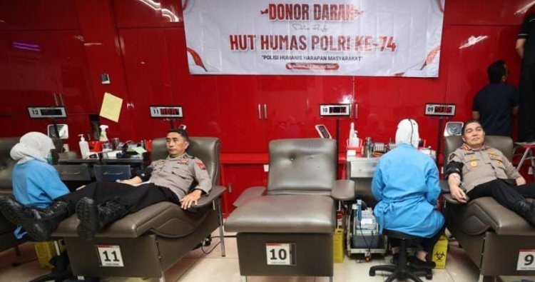 “Momentum di hari jadi Humas Polri ke-74 ini kami jadikan ajang untuk berbagi dan membantu sesama, " ungkap Kombes Abast usai mendonorkan darahnya.